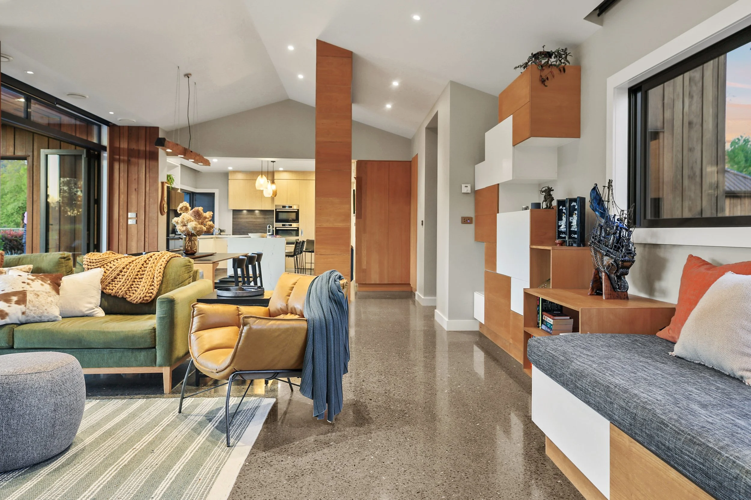 Jay recessed all the carpet areas of the house, so as to be on the same level as the polished concrete. No mean feat!